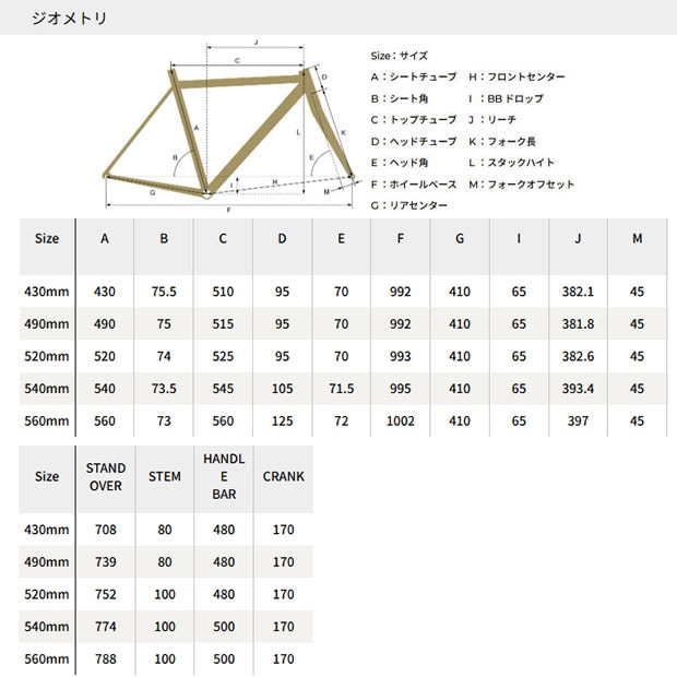 | サイズ | 430mm / 490mm / 520mm / 540mm / 560mm |