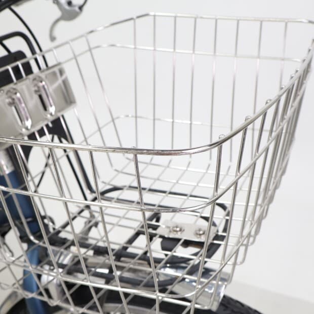 一部に傷や錆や凹みがありますが、比較的状態の良い車体です。前カゴが後付けされています。