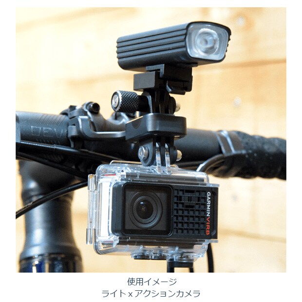 ライトとGARMIN、アクションカメラとライトなど自由自在に組み合わせ可能なブラケットです。