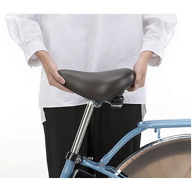 レトロなデザイン。サドル下部に幅広ガードを設けることでラクにスタンドが立てられる。