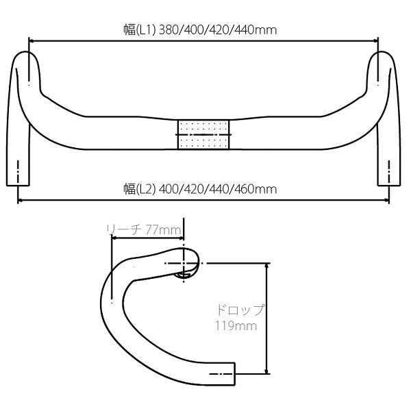 ハンドルトップ部は卵形で握りやすくロングライドでも手に疲労を貯めません。