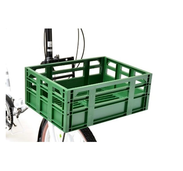 がっしりしたコンテナを絶妙にそれらしく、スタイリッシュに仕上げた自転車用コンテナバスケット。屋外で、しかも自転車で使う対候性にも優れた無骨だけどイイ感じのバスケットです。一般的な前・後キャリアに取付が可能。