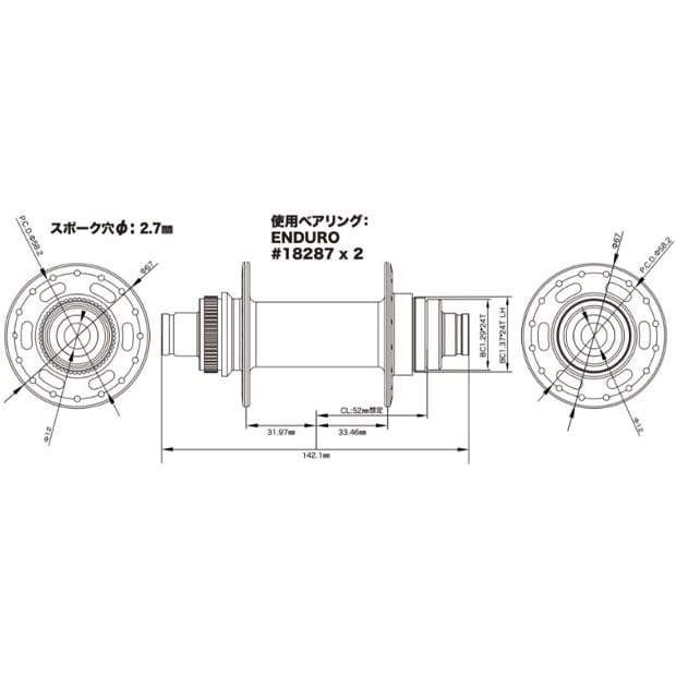 32H スルーアクスル 12TH x 142mm シングルハブです。
