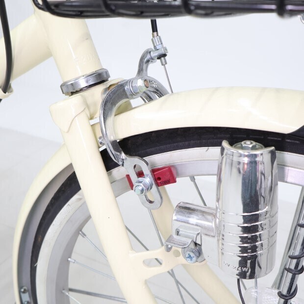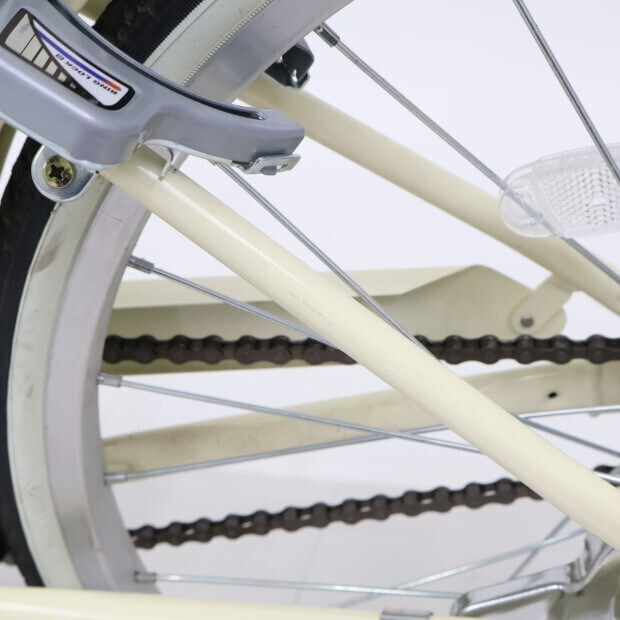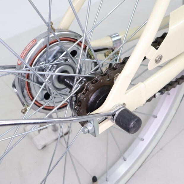 一部に傷がありますが、比較的状態の良い車体です。前カゴ、リング錠が後付けされています。