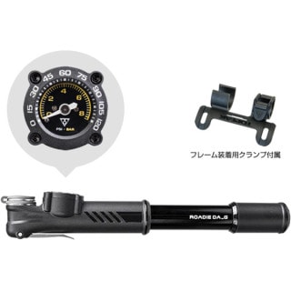 最大120psi まで測れるダイヤル ゲージ付 (英式バルブの空気圧測定はできません)