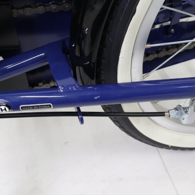 一部に傷がありますが、比較的状態の良い車体です。前カゴ、前後泥除けが後付けされています。