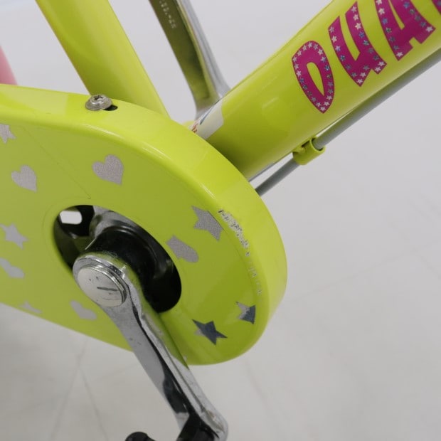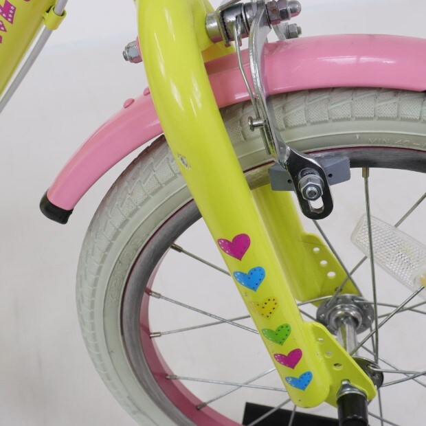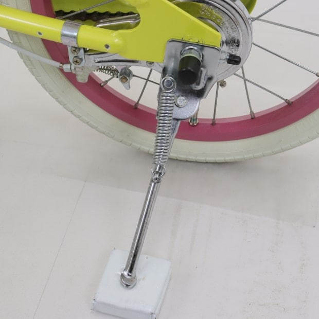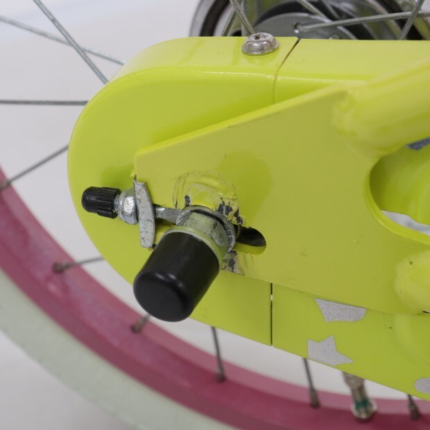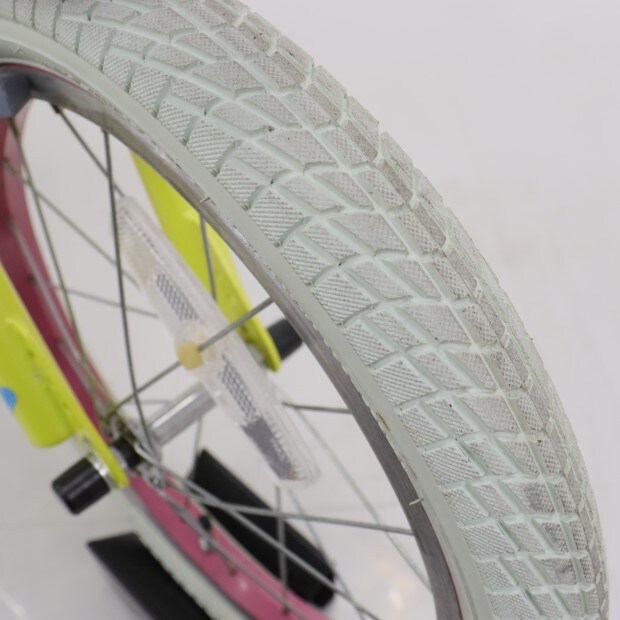 一部に傷がありますが、比較的状態の良い車体です。補助輪がスタンドに交換されています。