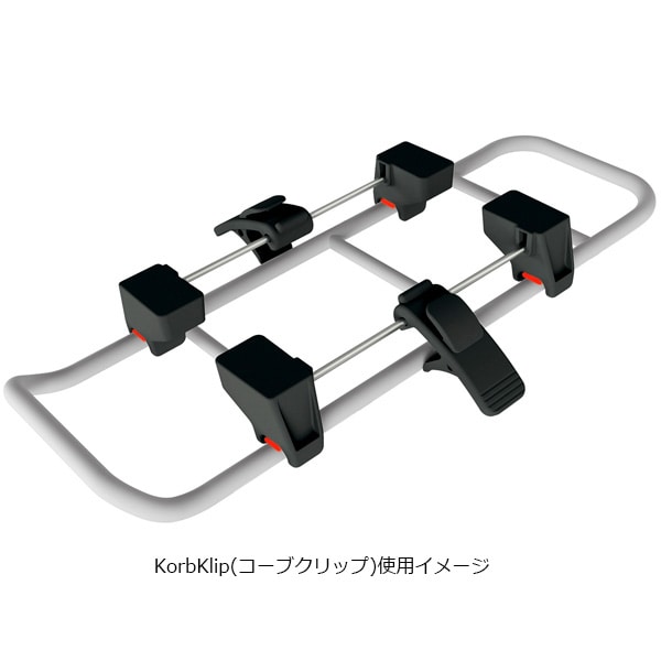 フロントキャリア、リアキャリアのどちらにも取付けられる籐(ラタン)製のドギーバスケット。ワンタッチでキャリアに着脱可能なKorbKlip(コーブクリップ)システム。