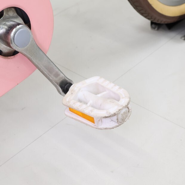 一部に傷や錆がありますが、比較的状態の良い車体です。補助輪がスタンドに交換されています。