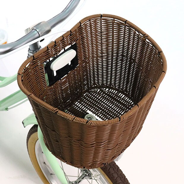• ・スカートでもまたぎやすいフレームに、幅広で座りやすいレザー調サドル、全体を編み込んだ籐風バスケットを装備。さらに、指の挟み込みを防ぐブレーキレバーなど、上質さを追求しています。