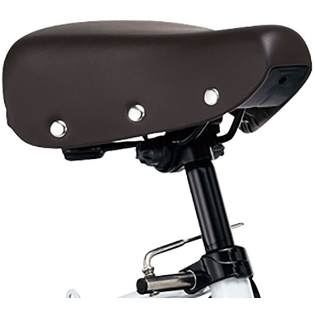 レトロなデザイン。サドル下部に幅広ガードを設けることでラクにスタンドが立てられる。