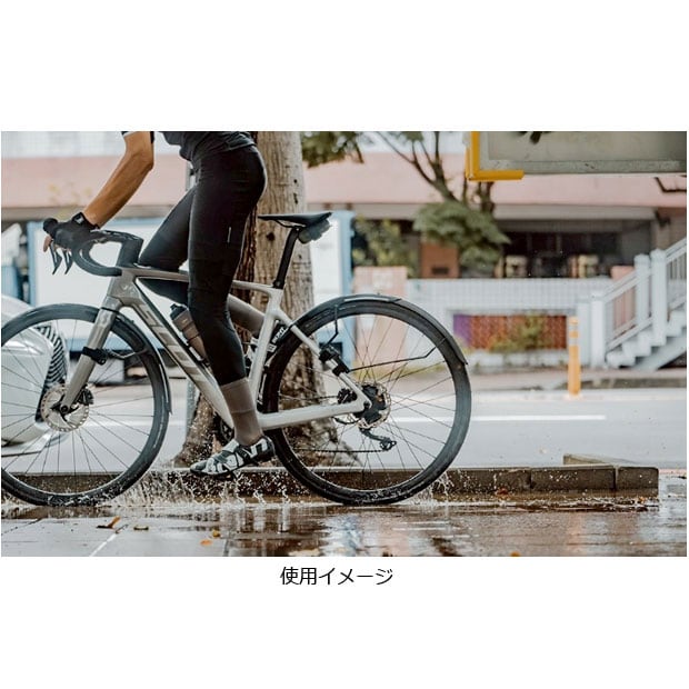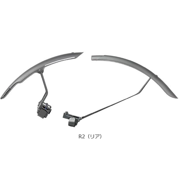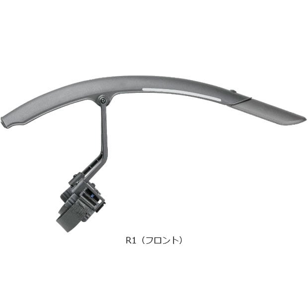 R1(フロント)はフロントフォークに面ファスナーで簡単装着でき、調整可能なステーで、泥や水からに防ぎます。