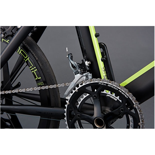 エアロ形状のフレームワークがアクティブでダイナミックな乗り心地を提供し、スムースウェルドとインターナルケーブルが美しさを表現します。ダウンチューブのエアロ形状が目立つが、トップチューブのホリゾンタル設計は従来のものよりトップチューブの位置を低くしており、乗降時がスムーズになるなど美しさと利便性を両立しています。