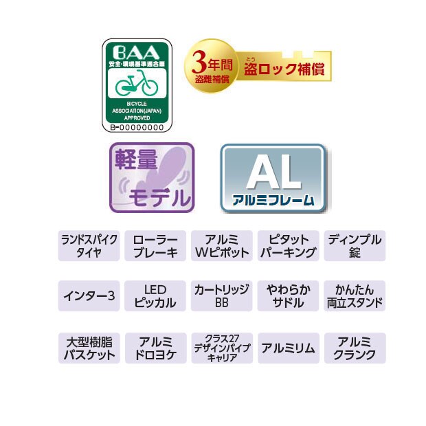 BAAマークが貼付された自転車は、一般社団法人自転車協会が制定した安全・環境基準適合車です。
