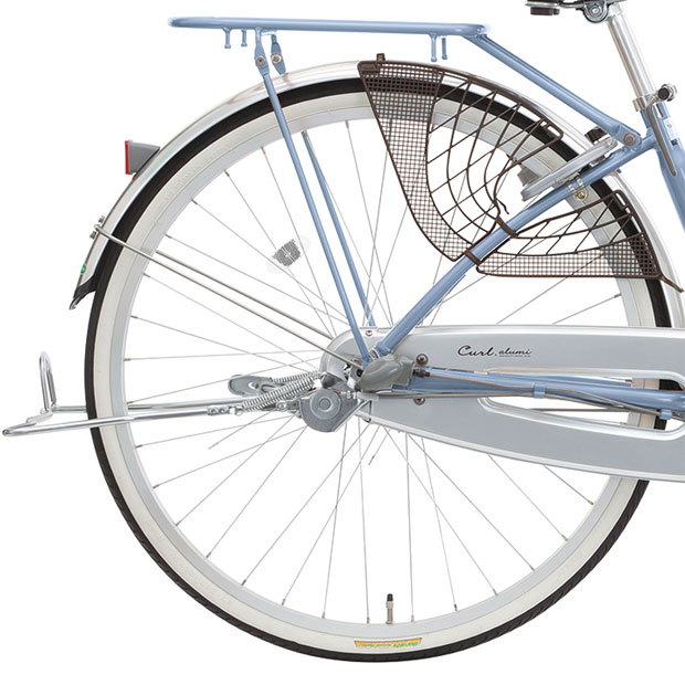 制動力が高く雨の日でも良く効く内蔵式のブレーキ。いやな音鳴りもありません。