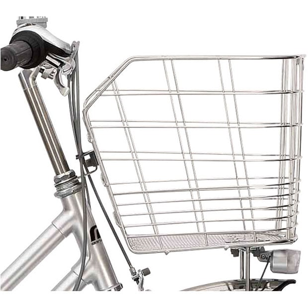 前カゴの取付け器具を短くして前カゴをハンドルに近づけました。これにより重い荷物を積んでもふらつかずに安全に走れます。