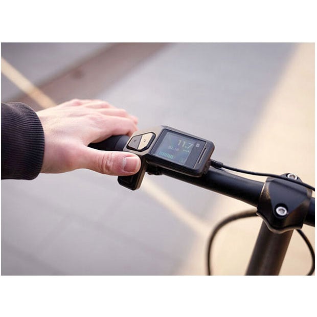 左手グリップ側に設置したディスプレイは、視認性と操作性に優れ、さらにIPX6の防水基準を持ちます。