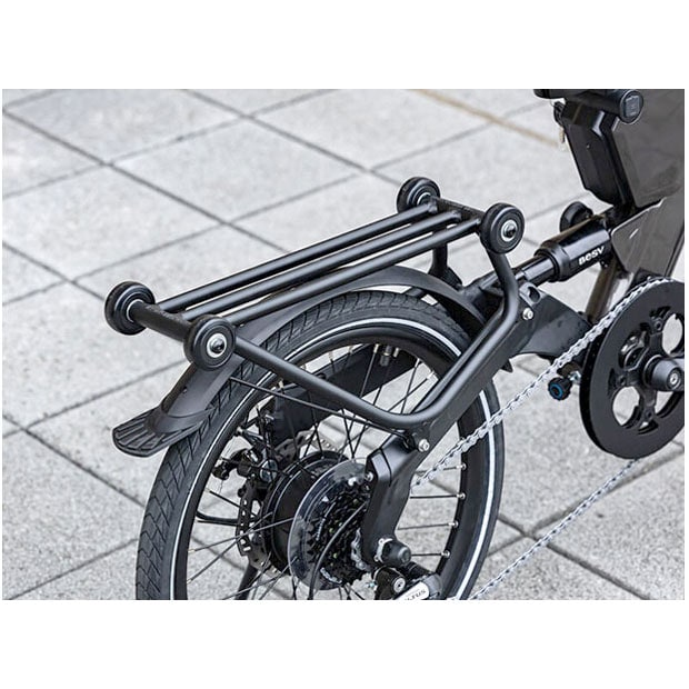 840×770×340mmサイズとコンパクトに。オプションのリアキャリアを装着すれば畳んだままで転がし移動も可能です。