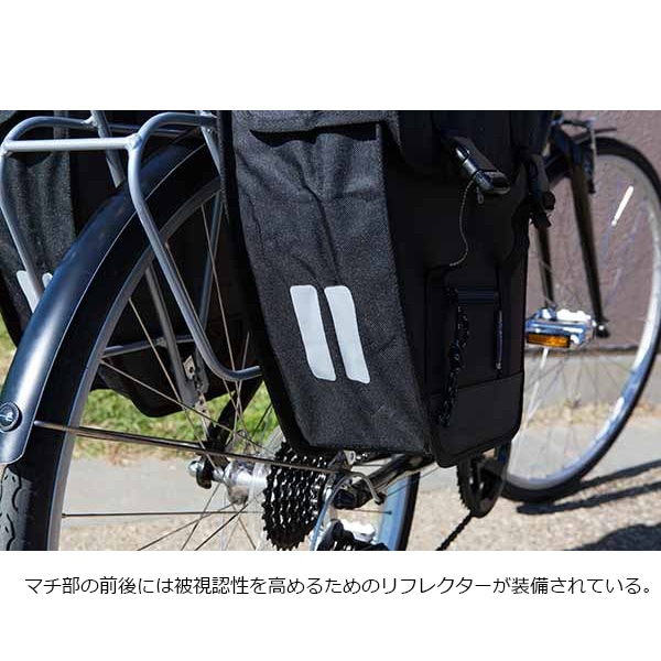 マチ部の前後には被視認性を高めるためのリフレクターが装備されている。