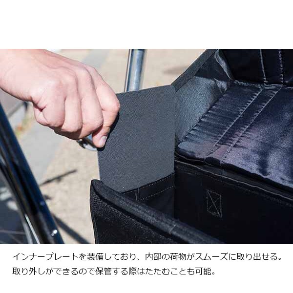 インナープレートを装備しており、内部の荷物がスムーズに取り出せる。取り外しができるので保管する際はたたむことも可能。