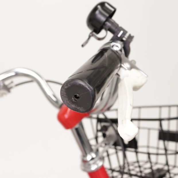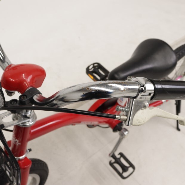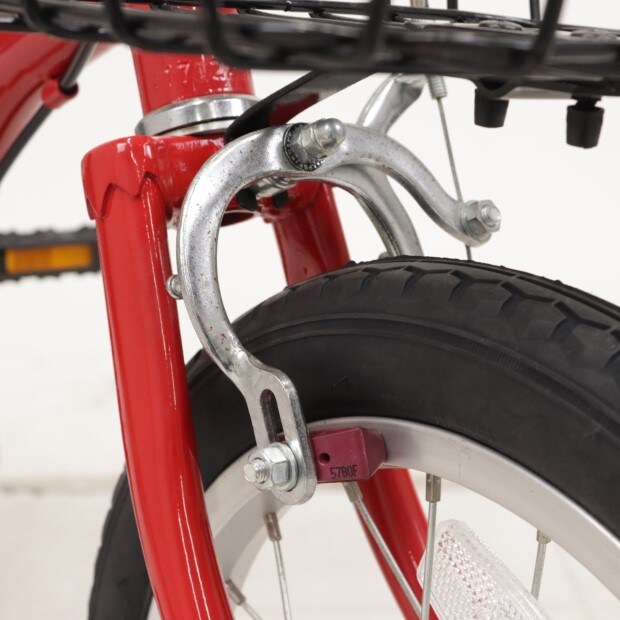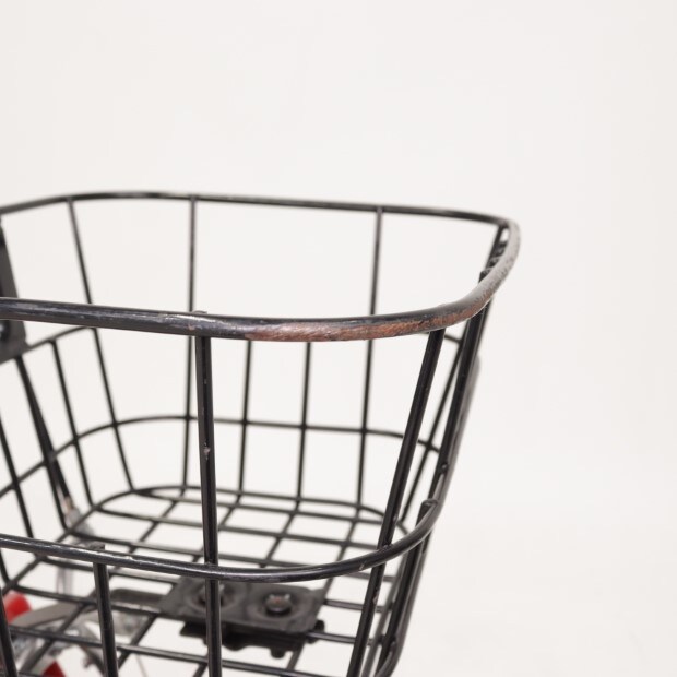 傷、錆あり。前カゴが後付けされています。補助輪がスタンドに交換されています。