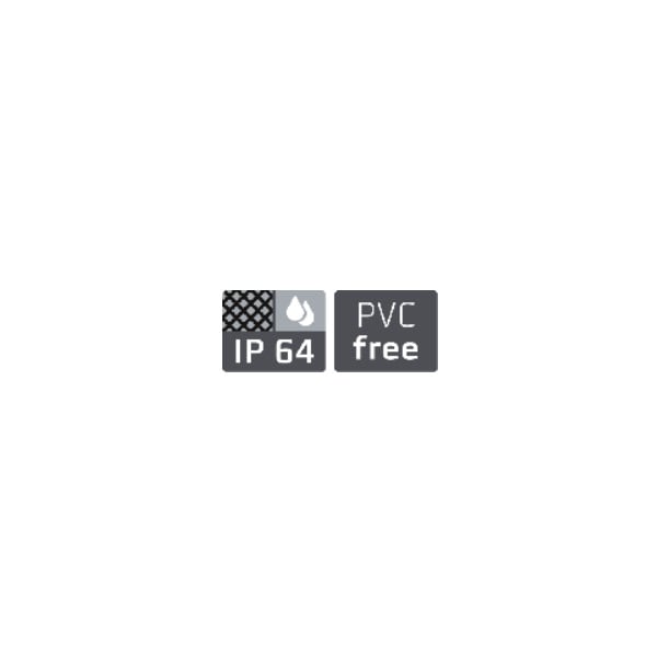 IP64:粉塵が内部に侵入しない。いかなる方向からの水の飛沫によっても有害な影響を受けない。