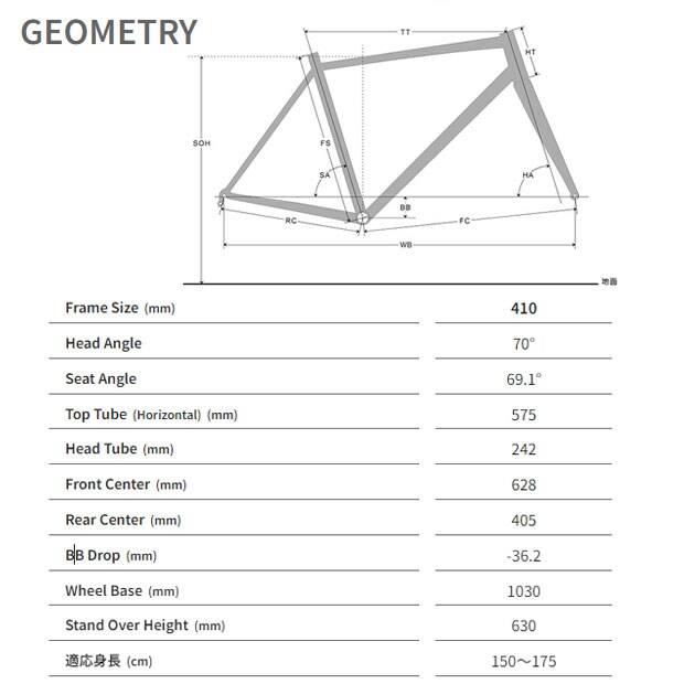 | SIZE(C-T)/適正身長(cm) | 410mm(150~175) |