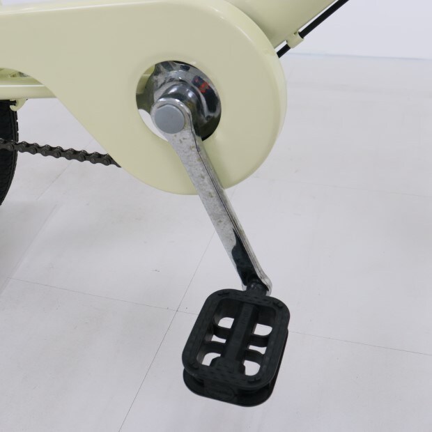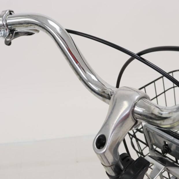 一部に傷や錆がありますが、比較的状態の良い車体です。前後チューブにパンク防止剤が注入されています。前カゴが後付けされています。スタンドが両立スタンドに変更されています。