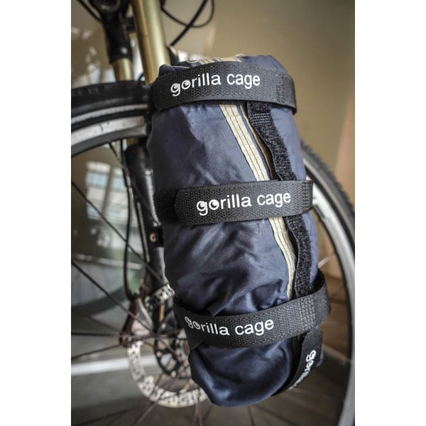 専用のクリートをボトルケージ穴に取り付け、本体をスライドさせて簡単に着脱可能なドライバッグや寝袋など、様々なものを装着可能なケージです。