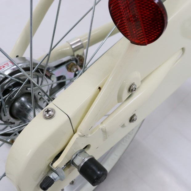 傷あり。補助輪がスタンドに交換されています。前カゴ、泥除けが後付けされています。