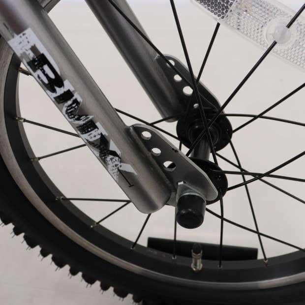 一部に傷がありますが、比較的状態の良い車体です。補助輪がスタンドに交換されています。
