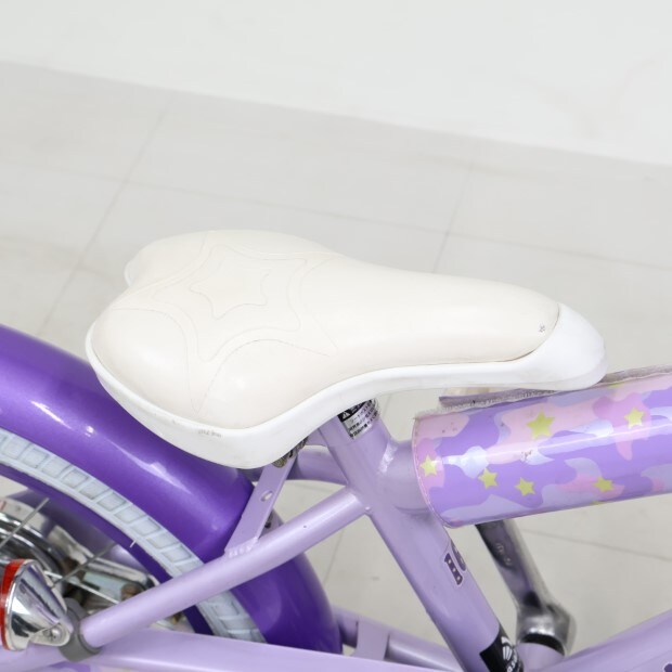 一部に傷や錆がありますが、比較的状態の良い車体です。補助輪がスタンドに交換されています。