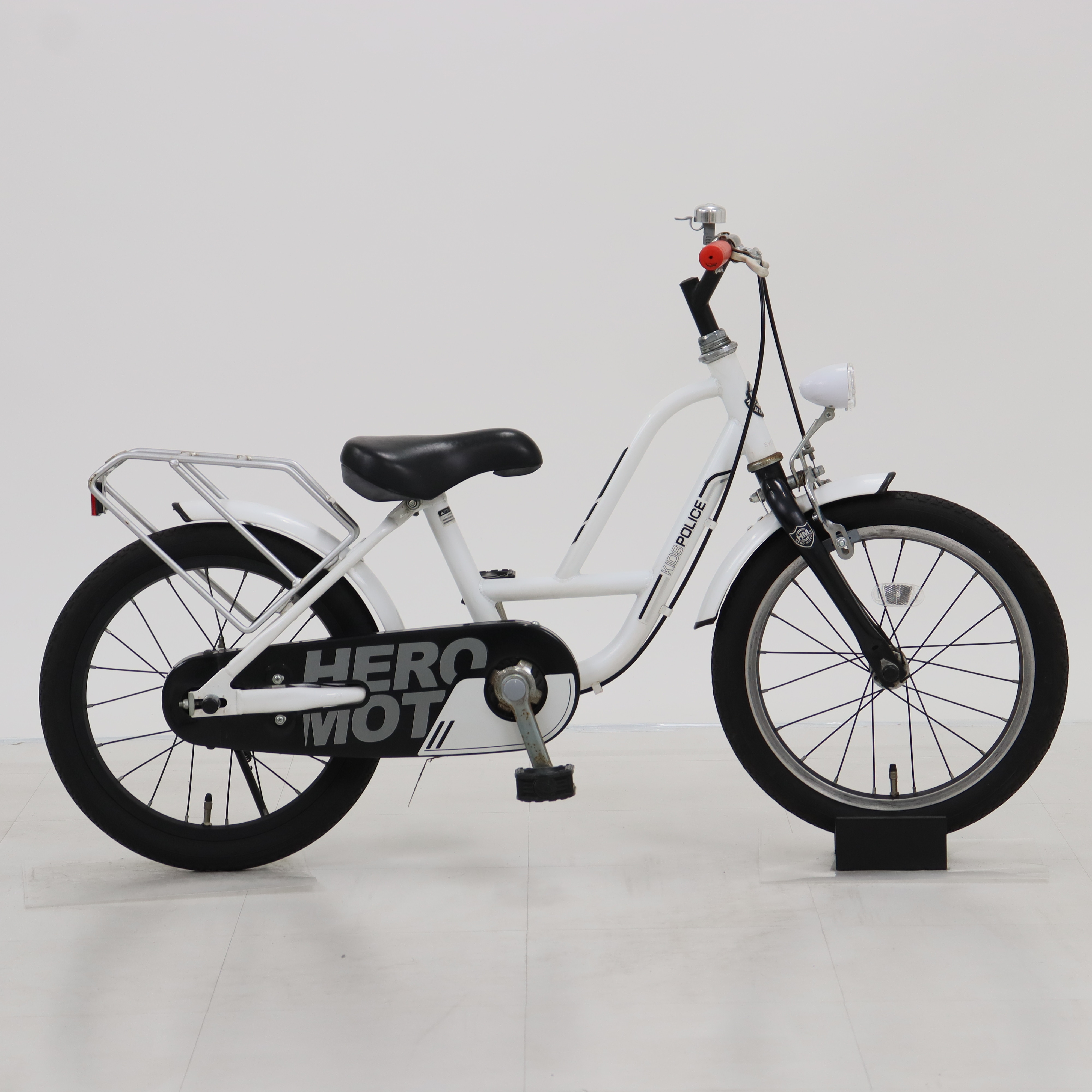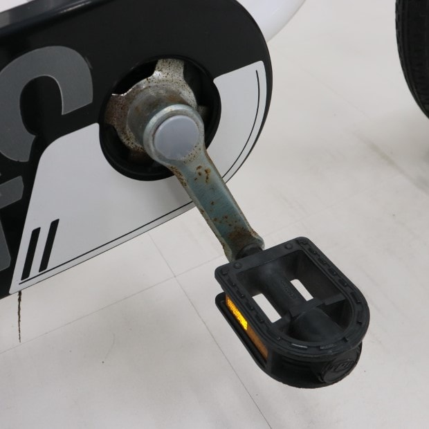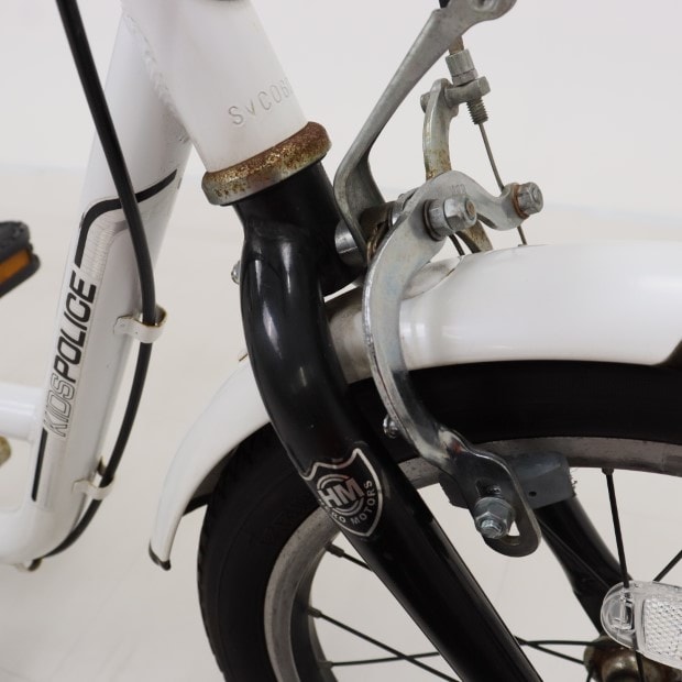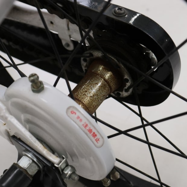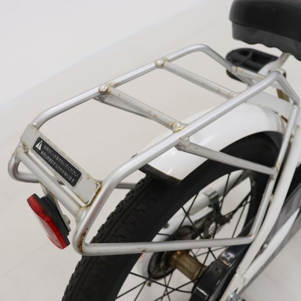 傷、錆あり。補助輪がスタンドに交換されています。リアキャリア・サイドバッグ・安全免許証欠損。