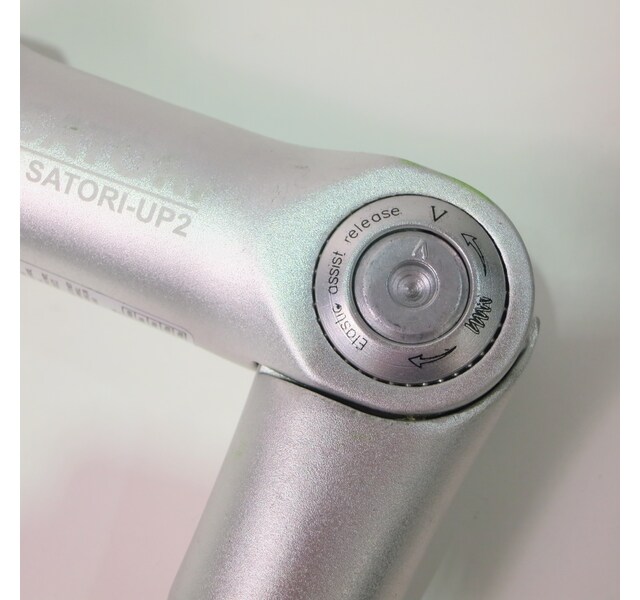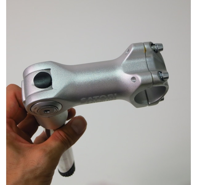 アップライトなポジションを可能にするクイル式のアジャスタブルスレッドステム。ステム長90mm。