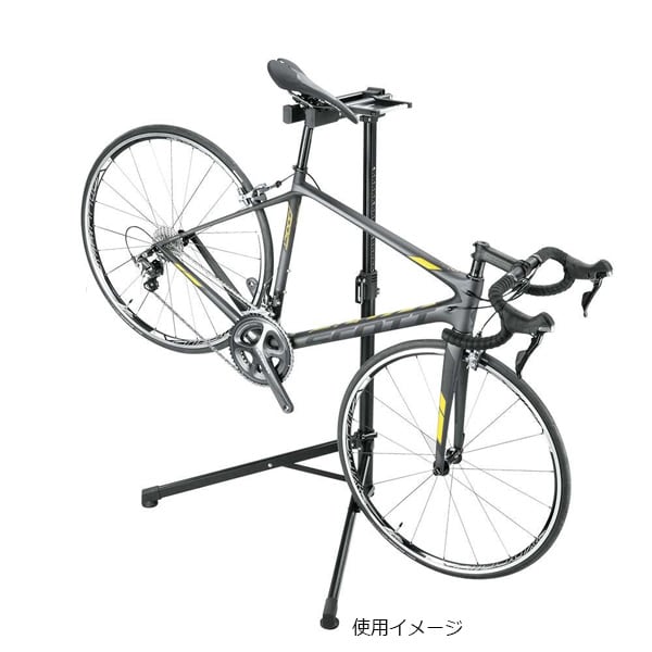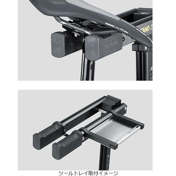 サドルやフレームを引っ掛けてバイクを持ち上げるリペアスタンド「プレップスタンドZX」。