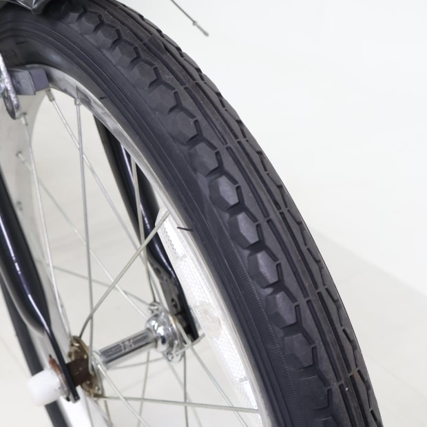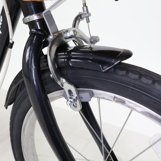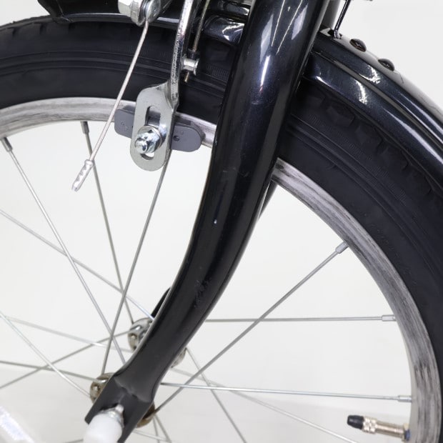 一部に傷や錆やスレがありますが、比較的状態の良い車体です。補助輪が両立スタンドに交換されています。