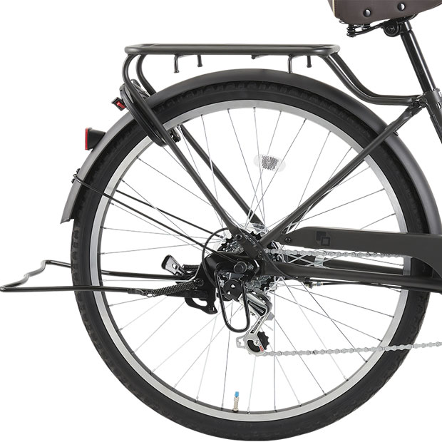 後キャリアは耐荷重27kg。重たい荷物の積載にも安心です。