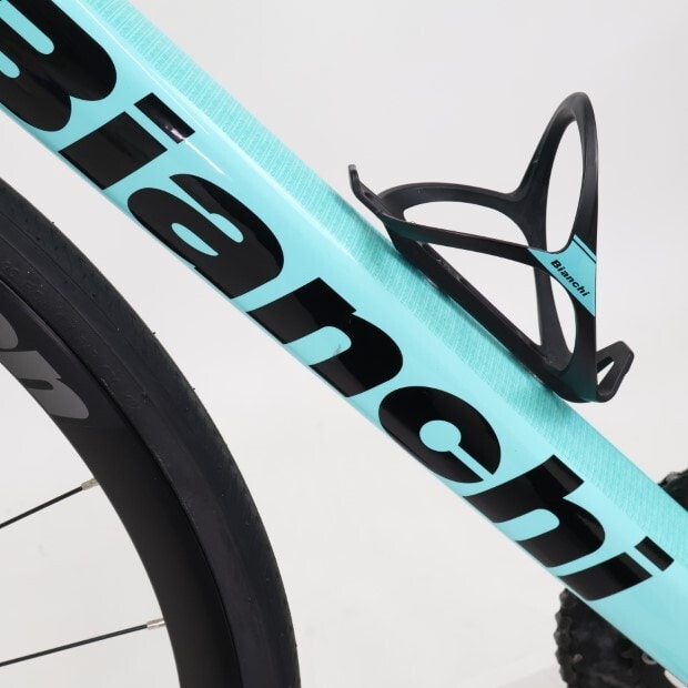 一部に傷やスレがありますが、比較的状態の良い車体です。ハンドルバー、ステムがカスタマイズされています。ビンディングペダル(SPD-SL)、ボトルケージが後付けされています。