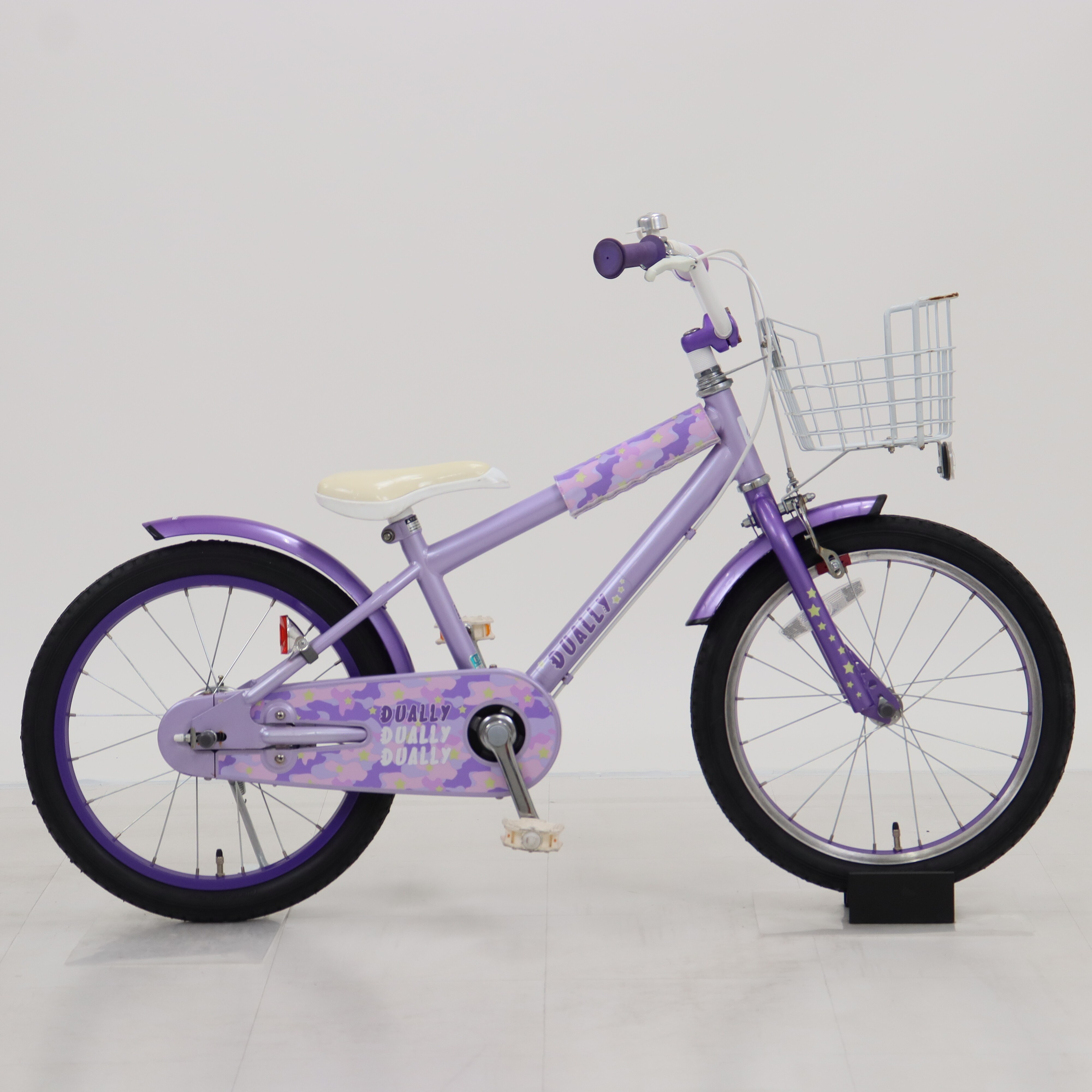 一部に傷や錆がありますが、比較的状態の良い車体です。補助輪がスタンドに交換されています。