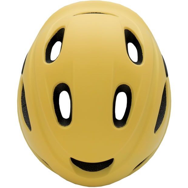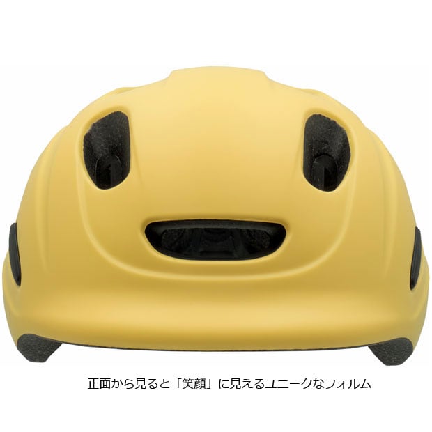 ・ヘルメットを正面から見ると「笑顔」に見えるユニークなフォルムを採用しています。