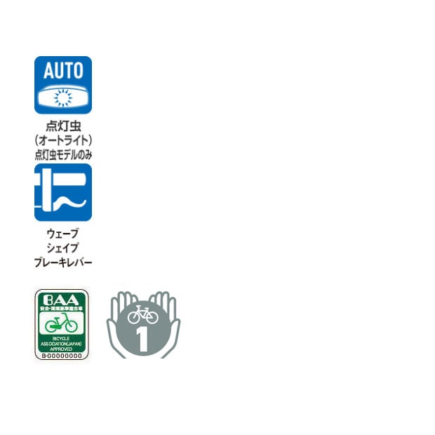 一般社団法人自転車協会が制定した安全・環境基準適合車です。 ブリヂストンの自転車および電動アシスト自転車はBAA(自転車協会制定)で要求される基準より さらに厳しい独自の安全基準を制定しています。