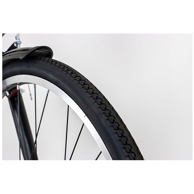 スポーツタイプの自転車に使われる700Cのタイヤではなく、シティサイクルと同じで使用率の高い27インチのタイヤを使用。