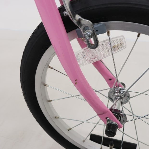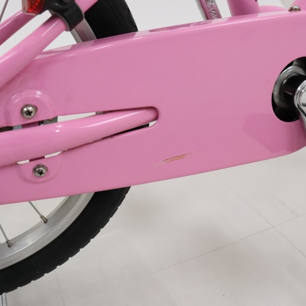 一部に傷や錆がありますが、比較的状態の良い車体です。補助輪がスタンドに交換されています。