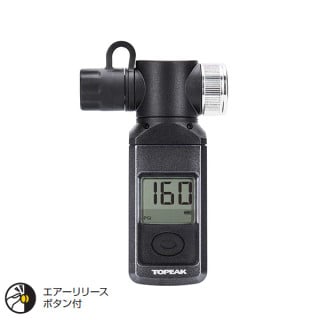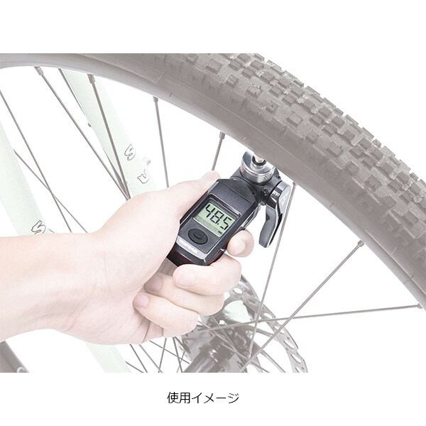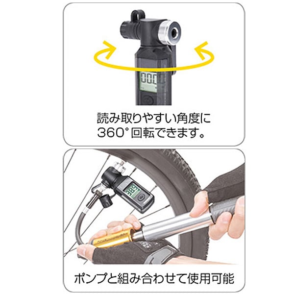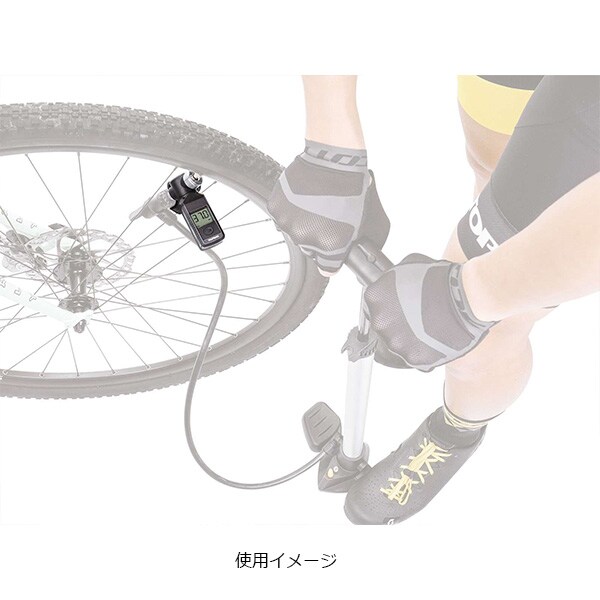 空気圧を正確に計測できるトピークデジタルエアーゲージ「シャトルゲージデジタル」。 ポンプと組み合わせて使用することで、空気を充填しながら空気圧を計測することが可能です。