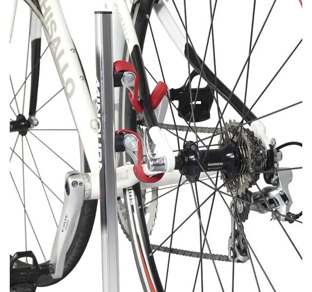 色々な角度のチェーンステイ、シートステイにフックがアジャスト(高さ、角度)できる。しかもフックはゴムラバーで覆われている。ただ、自転車を載せた状態で調整ができないので、フックを位置を変えては自転車を載せてチェックすることになる。その点で-1点とした。ただ、頻繁にフックの位置や向きを変えるものではないので、実用上は気にならない。