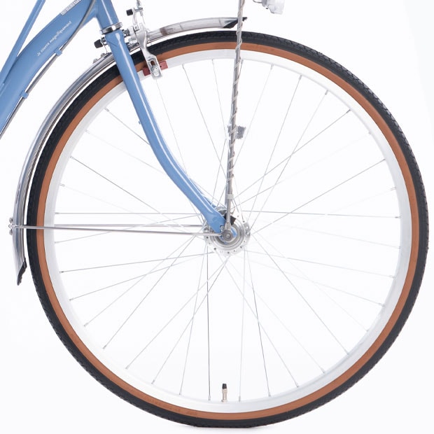 変形に強いWウォールアルミリムを採用。ステンレスリムに比べ重量当社比408g(前後リム)の軽量化を実現しました。