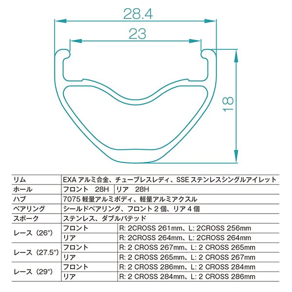 独自開発のリム専用特殊アルミ合金「EXA」は強度、剛性、耐久性、全てにおいてハイパフォーマンスを発揮。