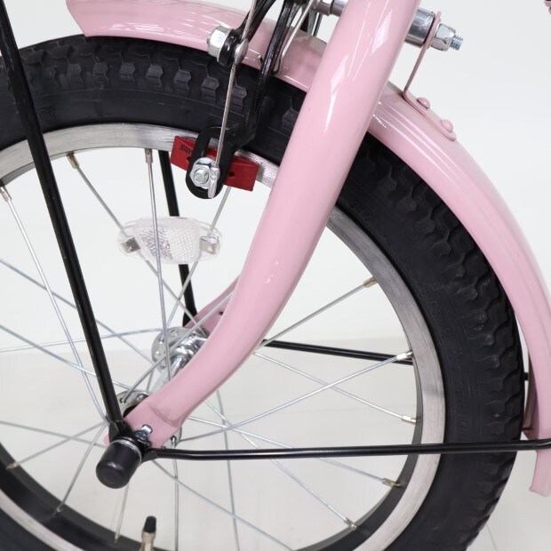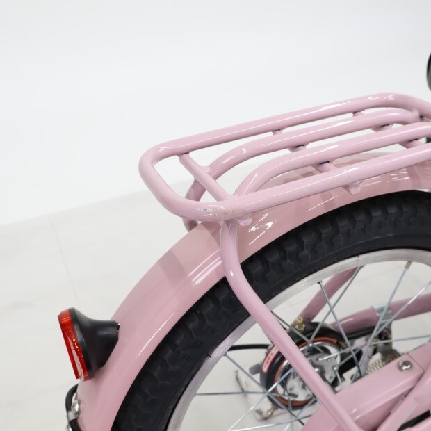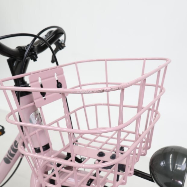 一部に傷や汚れがありますが、比較的状態の良い車体です。補助輪がスタンドに交換されています。