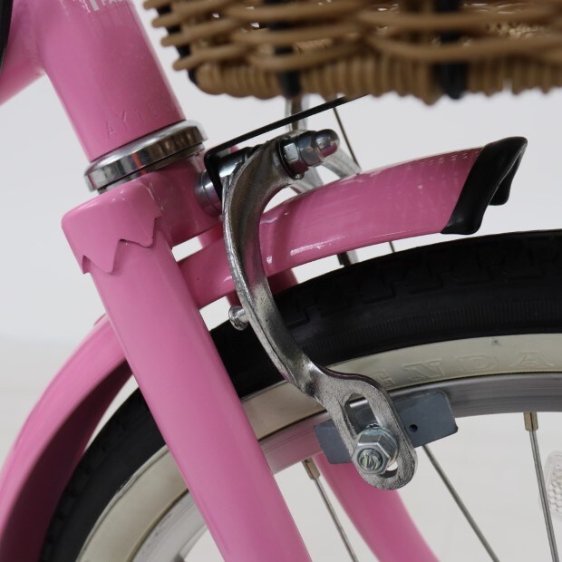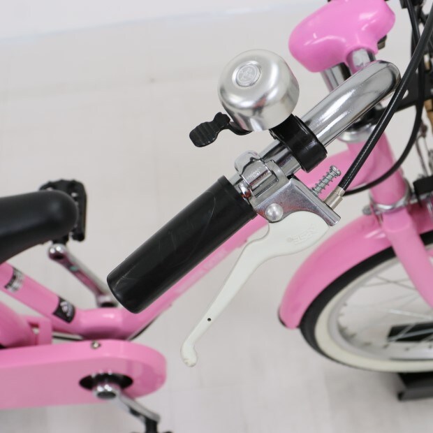 一部に傷や錆がありますが、比較的状態の良い車体です。補助輪がスタンドに交換されています。泥除けが後付けされています。