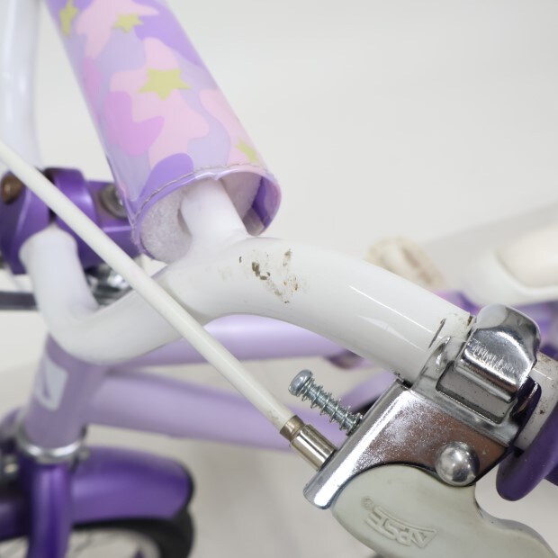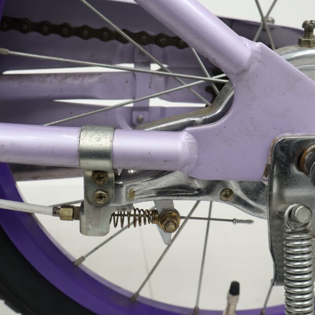 一部に傷や錆がありますが、比較的状態の良い車体です。補助輪がスタンドに交換されています。